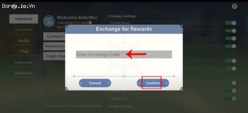 Bước 5: Nhập chính xác hoặc sao chép mã code được cung cấp phía trên vào ô trống Enter Exchange Code.