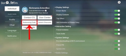 Bước 4: Nhấn vào nút Redeeming Code trong cửa sổ mới bật lên.