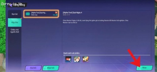 Bước 6: Cuối cùng, ấn vào nút Nhận tại hòm thư Quà, để thu thập đến các vật phẩm hấp dẫn từ nhà phát hành.