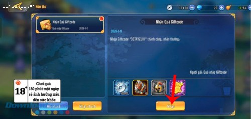 Bước 6: Cuối cùng, nhấn vào nút Nhận, ở phần thư Nhận quà Giftcode, nhận những trang bị hấp dẫn đến từ nhà phát hành game.