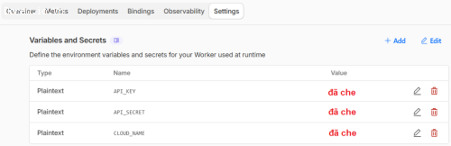 Nếu Imgur vẫn khiến bạn thấy “thiếu niềm tin”, thì Cloudinary là phương án ngon hơn. Và điểm mấu chốt ở đây chính là Cloudflare Workers có hỗ trợ Variables & Secrets.