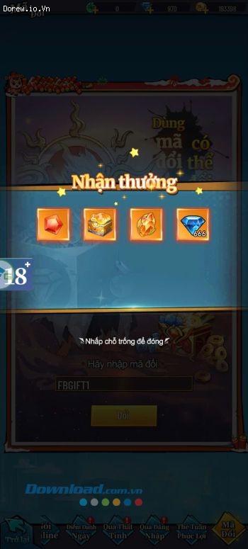 Bước 4: Lúc này, chúng ta sẽ nhập chính xác giftcode ở phía bên trên, rồi chạm vào nút Đổi.