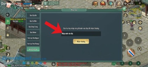 Bước 3: Tại khung cửa sổ Phúc Lợi khi này, hãy ấn vào mục Nhập Giftcode.